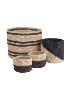 Körbe sind Trend – und überraschend modern im Design mit dem 4-teiligen Isalo Korbset in Anthrazit. Handmade in Madagaskar, wurden diese Körbe aus Raffia gehäkelt. Handarbeit und Naturmaterial lassen dabei jedes Mal ein dekoratives Unikat entstehen, das in Ihrem Zuhause raffinierte Akzente setzt. Weitere Größen und Varianten erhältlich, ideal zum Kombinieren.
