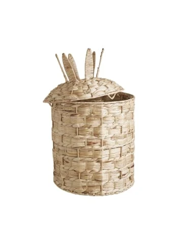 Sommerfeeling pur: Die Trendfrucht Ananas zieht als Pineapple Ananaskorb mit Deckel in unser Zuhause ein, sobald das Thermometer zum ersten Mal die 20 Grad-Grenze knackt. Die dekorative Aufbewahrung aus natürlicher Wasserhyazinthe, Metall und Papier verwahrt z.B. Haarspangen im Bad oder Stifte & Co. im Homeoffice. Auf dem Wohnzimmertisch gibt sie Ladegeräten ein hübsches Zuhause, und auch im Flur schafft der Pineapple Ananaskorb schönste Ordnung. In einer weiteren Größe erhältlich, ideal auch zum Kombinieren.