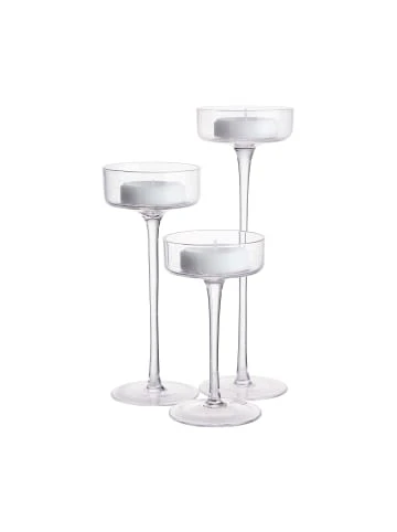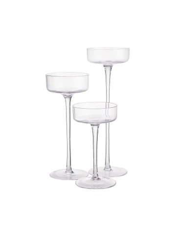 Der 3-teilige William-Kerzenhalter-Set aus klarem Glas weckt mit seiner formvollendeten Erscheinung Erinnerungen an einen stolzen Pokal. Für Stumpenkerzen.