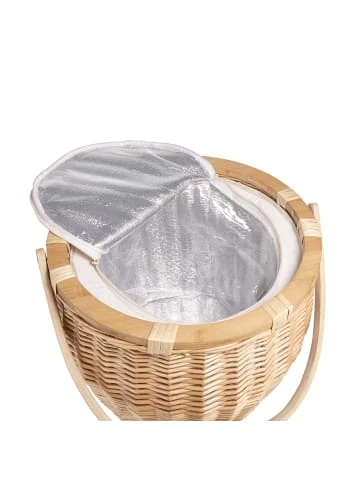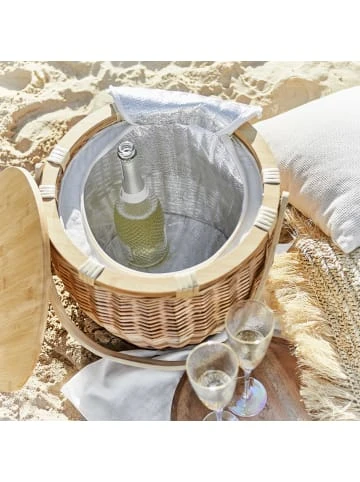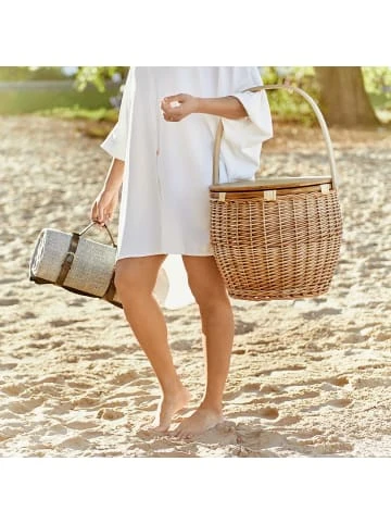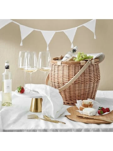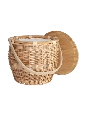 Beim nächsten Ausflug ins Grüne ist der naturfarbene The Great Outdoors Picknickkorb mit von der Partie. Unter dem abnehmbaren Bambus Deckel, der sich beim Picknick als Servierplatte nützlich macht, hält eine isolierte Kühltasche mit Reißverschluss Ihre Salate, Sandwiches und Drinks schön kühl. Der hochwertige Korb mit Holzgriff ist handgefertigt, lebensmittelecht und kann mit einem feuchten Tuch gereinigt werden.