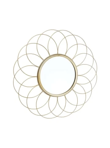 Spiegel statt Bild: Der runde Fiore Metallspiegel Blume mit 42 cm Durchmesser ist das moderne Dekoelement für jedes Zimmer – vom Flur bis zur Ankleide. Sein besonderes Design und goldener Look machen ihn zu einem herrlichen Eyecatcher, ob auf weißen Wänden, farbigen Untergründen oder bunten Tapeten. Da lassen Sie Ihren individuellen Ideen einfach freien Lauf. In einer weiteren Variante erhältlich, ideal auch zum Kombinieren.
