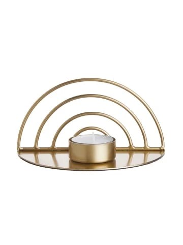 Das perfekte Highlight für Ihren gedeckten Tisch: Der Shine Teelichthalter Regenbogen aus goldfarbenem Eisen glänzt auf Ihrer Tafel zwischen Besteck in Gold, funkelnden Gläsern und hübschen Tellern. Die Farbe der Kerzen können Sie z.B. auf das Geschirr, die Tischwäsche oder den Blumenschmuck abstimmen. In einer weiteren Variante erhältlich, ideal auch zum Kombinieren.