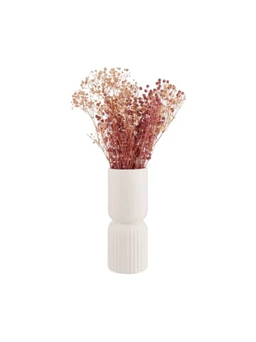 Ganz schön raffiniert: Die moderne Two-Part Vase aus weißem Steinzeug verbindet zwei Vasen in einer und steht bei Bedarf für Ihre Blumen Kopf. Ob Sie die geriffelte oder glatte Seite oben oder unten nutzen, bleibt dabei Ihrem guten Geschmack, Ihrer Lust und Laune überlassen.