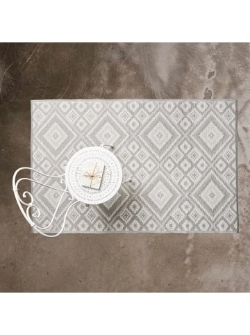 Weil Sie auf wohnlich und zugleich pflegeleicht stehen, legen Sie sich den modernen Colour Clash Outdoorteppich mit grauem Ethno-Muster und Bastteppich-Struktur zu Füßen. Und das nicht nur auf Ihrem Balkon oder Ihrer Terrasse, sondern gerne auch indoor im Wohnbereich. So läuft es sich drinnen wie draußen spürbar angenehm. Aus robustem Kunststoffgewebe, UV-beständig. – Gemustert – Mehrfarbig – Modern – Zeitlos