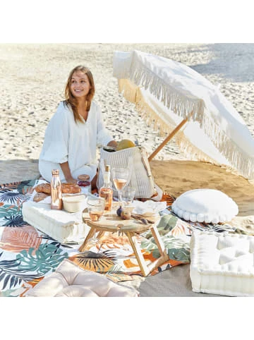 Egal, wo Sie sich niederlassen: Mit der bunten Parea Picknickdecke verbreiten Sie selbst im kleinen Park um die Ecke ein bisschen Tropenfeeling. Dafür sorgt das dekorative Blattmuster in Grün und Erdtönen. Zum einfachen Mitnehmen bringt die hübsche Picknickdecke einen passenden Tragegurt mit – einfach umhängen, und Sie haben die Hände frei für Kühltasche oder Picknickkorb. Aus reiner Baumwolle und mit Füllung aus Polyester, Rückseite uni.