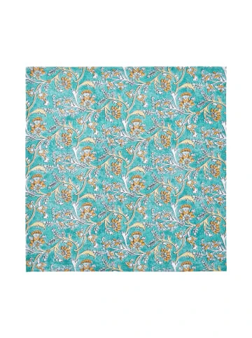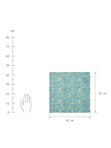 Blau-Grün, warme Braun-/Beigetöne und Weiß prägen die dekorative Farbwelt der Oriental Dreaming Serviette 42 x 42 cm aus reiner Baumwolle, und beim orientalisch inspirierten Muster fügen sich Blumen, Blätter und Zweige kunstvoll zusammen. Modern und ein bisschen verträumt ist dieser Look, der sich z.B. gut mit Holz, hellem Geschirr und Tischaccessoires in trendigem Gold kombinieren lässt. Aus der Oriental Dreaming Tischwäsche-Serie sind Tischdecken in weiteren Größen, Tischläufer und Servietten erhältlich.
