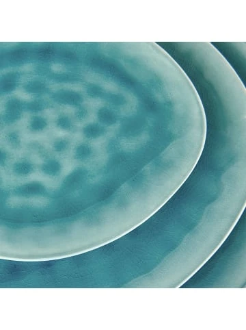 Zurück zur Natur: Unser 16-teiliges De La Roya Geschirrset zum Dinner aus Steinzeug ist von organischen Formen, von Blättern und Pflanzen inspiriert. Und das inspiriert Sie dazu, zu Hause mal etwas ganz Neues auf den Tisch zu bringen. – hochwertiges Geschirr aus glasiertem Steingut – Innenseite mit kunstvoller Krakelee-Glasur beschichtet – jedes Stück ist ein Unikat – organische Form, die von der Natur inspiriert ist – erfrischende Farben und unkonventionelles Design – innen glänzend, außen matt