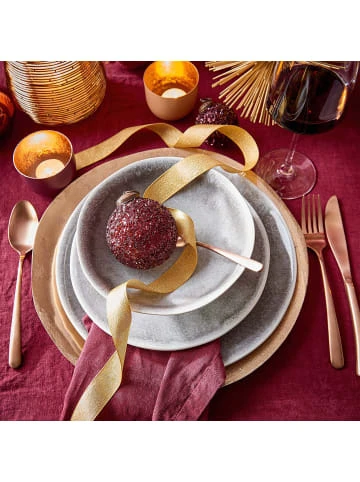 Mit unserer Geschirrserie Atlantis im angesagten Boho-Stil und organischen Formen kommt Extravaganz auf den gedeckten Tisch! Der Dinnerteller im 4er-Set aus Steinzeug ist handgefertigt in Portugal. Durch die reaktive Glasur entstehen unregelmäßige Farbverläufe, die jedes Teil der Serie zu einem echten Unikat werden lassen. Atlantis ist in verschiedenen Farben erhältlich, die Sie miteinander kombinieren können und so für Abwechslung auf Ihrem Tisch sorgen. Durch eine Iris-ähnliche Farbzentrierung passen alle Teile perfekt zusammen. Jedes Teil der Serie ist spülmaschinen- und mikrowellengeeignet. – Reaktive Glasur: Jedes Teil ein Unikat, durch Unterschiede bei der Farbgebung – Für den täglichen Gebrauch – Geschirrspülmaschinen- und mikrowellengeeignet