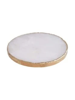 Warum der Crystal Edelstein-Untersetzer im 4er-Set aus Quarz mit Goldrand auf Ihrem gedeckten Tisch nicht fehlen darf? Weil feiner Champagner, guter Wein oder andere edle Drinks keine Bierdeckel mögen und viel lieber in einem angemessenen Ambiente serviert werden. Aus Naturstein, daher ist jeder Untersetzer ein Unikat, und die Farben und Größe variieren naturbedingt. Weitere Varianten erhältlich.