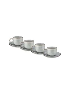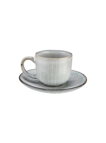 Die Henley Espressotasse mit Untertasse im 4er-Set aus Steinzeug freut sich schon darauf, mit Ihnen und Ihren Freunden beim Frühstück oder einem Kaffeekränzchen zu essen. Und genau wie Sie steht sie auf diese unkomplizierte, authentische Art, die sich beim Kochen, Tischdecken und Dekorieren lieber vom Gefühl als von strikten Vorgaben leiten lässt. Aus der Henley Serie sind passend erhältlich: ein großer Teller, ein kleiner Teller, eine Tasse, eine Teekanne und weitere Schalen, sowie Aufbewahrungsdosen. – Hochwertige Keramik: Robust und hitzebeständig – Jedes Teil ein Unikat: Natürliche Unterschiede bei der Farbgebung – Reaktive Glasur: Jedes Teil ein Unikat, durch Unterschiede bei der Farbgebung – Ein natürlicher Look mit Charme und Charakter – Im Trend: Skandinavisches Design – Geeignet für jeden Anlass durch schlichte und solide Machart