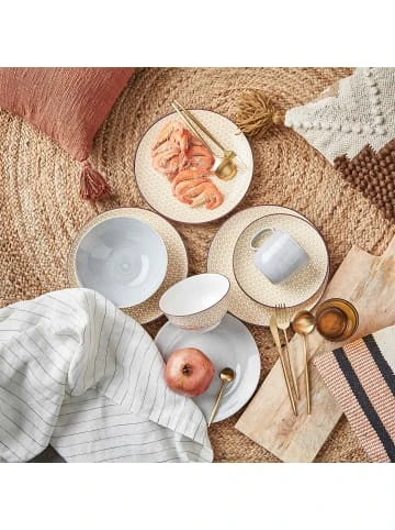 Handgetöpferter, natürlicher Look und zeitlose Farbgebung: Mit unserer Geschirrserie Manor in organischen Formen und klaren Farben bringen Sie den modernen Landhausstil auf Ihren gedeckten Tisch. Dabei besticht die Serie – wie hier der formschöne Frühstücksteller im 4er-Set – mit naturverbundenem Charme, der sich auch hervorragend mit anderen Stilen kombinieren lässt. Durch die reaktive Glasur entsteht zudem ein besonderer Farbverlauf, der jedes Teil der Serie zum echten Unikat macht. Die hochwertige Verarbeitung sorgt überdies dafür, dass Manor das perfekte Geschirr für den täglichen Gebrauch ist. – Reaktive Glasur: Jedes Teil ein Unikat, durch Unterschiede bei der Farbgebung – Robustes Steinzeug – Im Trend: Vintage-Look – Moderner Landhausstil – Für den täglichen Gebrauch – Geschirrspülmaschinen- und mikrowellengeeignet
