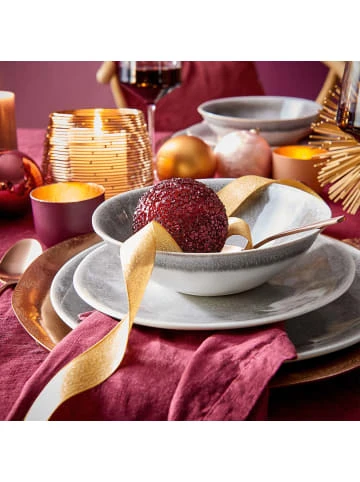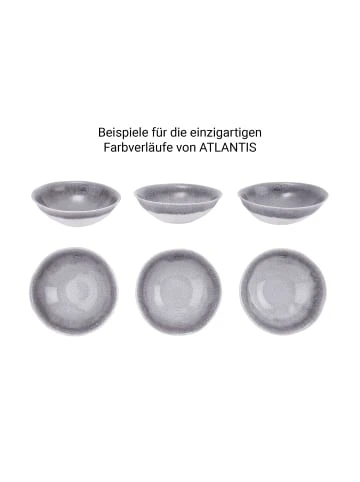 Mit unserer Geschirrserie Atlantis im angesagten Boho-Stil und organischen Formen kommt Extravaganz auf den gedeckten Tisch! Die Schale im 4er-Set aus Steinzeug ist handgefertigt in Portugal. Durch die reaktive Glasur entstehen unregelmäßige Farbverläufe, die jedes Teil der Serie zu einem echten Unikat werden lassen. Atlantis ist in verschiedenen Farben erhältlich, die Sie miteinander kombinieren können und so für Abwechslung auf Ihrem Tisch sorgen. Durch eine Iris-ähnliche Farbzentrierung passen alle Teile perfekt zusammen. Jedes Teil der Serie ist spülmaschinen- und mikrowellengeeignet. – Reaktive Glasur: Jedes Teil ein Unikat, durch Unterschiede bei der Farbgebung – Für den täglichen Gebrauch – Geschirrspülmaschinen- und mikrowellengeeignet