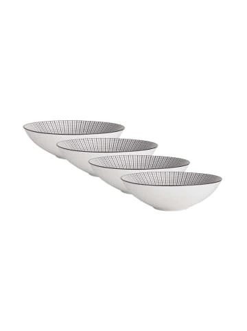 Handbemaltes und hochwertiges Steinzeug mit zarter Glasur: Die edle Servierschale im 4er-Set aus der kunstvollen Dim Sum Reihe lässt sich besonders ästhetisch mit den weiteren Deko-Tellern und Servierschalen kombinieren und ist daher perfekt für Events und Abendessen mit Familie und Gästen geeignet. Ob als Servierschale für duftende Gerichte oder Beilagen: Die Schalen sind einfach immer ein Highlight. – Glänzende Keramik mit Muster in kunstvoller Symmetrie – Hitzebeständig, robust und edel – Harmonie: Beruhigende Gleichmäßigkeit für positive Feng Shui Energie – Modern Asia Design kombiniert mit schlichtem Clean Living – Stilvolles Ambiente für besondere Anlässe