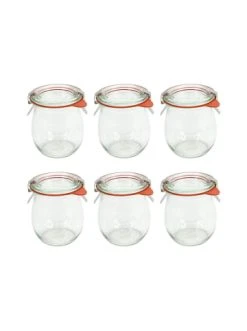 Was Sie jetzt frisch im Garten oder auf dem Markt anlacht, schmeckt im Winter wunderbar als Eingekochtes. Mit den original Weck-Einkochgläsern im 6er-Set (inklusive Einkochring und Klammern) fängt der Genuss dabei schon mit der Zubereitung an. Sie wählen einfach Form und Größe für Früchte, Marmelade, Chutney oder Gelee aus, blättern in Omas Rezeptbuch oder probieren neue Varianten aus. Und falls Sie das eine oder andere Glas doch noch vor dem Winter leeren: Weck-Einkochgläser können – ohne Gummi und Klammern – auch als Back- und Kochform verwendet werden.
