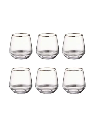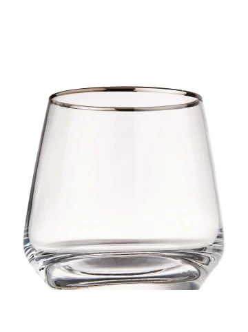 Ob zum Kaffee oder zum Wein: Ein Glas frisches Wasser in einem Touch of Silver Glas im 6er-Set mit silbernem Rand ist immer ein gern gesehener Begleiter. Es löscht den ersten Durst und neutralisiert den Geschmackssinn, so dass man sich besser auf die feinen Aromen eines guten Espressos oder edlen Tropfen konzentrieren kann.