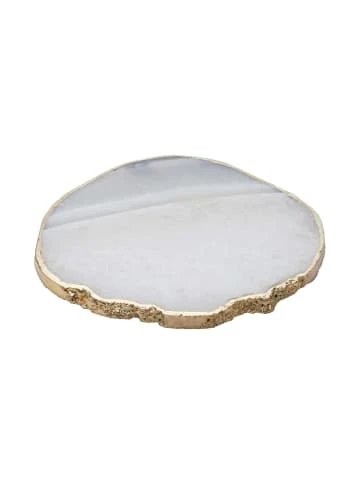 Warum der Crystal Edelstein-Untersetzer aus weißem Quartz mit Goldrand auf Ihrem gedeckten Tisch nicht fehlen darf? Weil feiner Champagner, guter Wein oder andere edle Drinks keine Bierdeckel mögen und viel lieber in einem angemessenen Ambiente serviert werden. Aus Naturstein, daher ist jeder Untersetzer ein Unikat, und die Farben und Größe variieren naturbedingt. Weitere Varianten erhältlich.