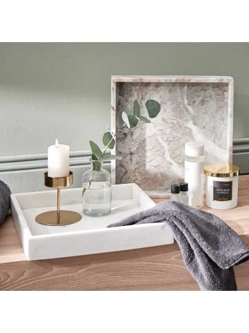 Hochwertiger Marmor, modernes Design: Das quadratische Marble Marmor Tablett in einem braunen Sandton nutzen Sie Badezimmer für Kerzen, auf dem Schminktisch als Schmuckablage, im Flur für Ihre Schlüssel und auf dem gedeckten Tisch für Ihre kreativen Dekos – um nur einige von ganz vielen dekorativen Ideen zu nennen. Das Naturmaterial Marmor macht jedes Teil zum Unikat. In weiteren Varianten erhältlich. – Jedes Teil ein Unikat: Natürliche Unterschiede bei der Farbgebung