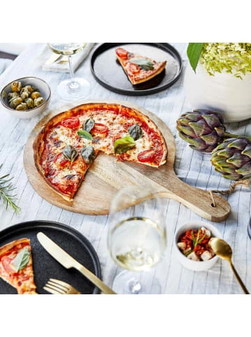 ¡Buen provecho! Mit dem La Bodega Schneide- und Servierbrett aus warmem Mangoholz bringen Sie spanischen Schinken und Käse genau so auf den Tisch, wie Sie es in Barcelonas und Madrids Tapasbars lieben. Und zwischen Ihren Fiestas nutzen Sie das Schneidebrett einfach als Küchenhelfer beim Zubereiten. Mit Juteband zur praktischen Aufhängung. Passendes Tapasbrett erhältlich.