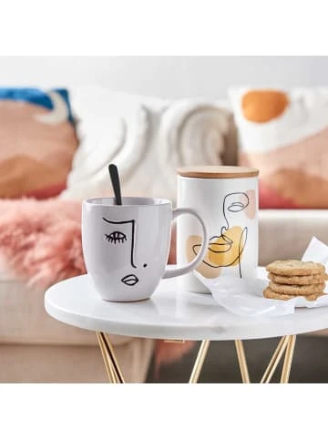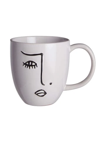 Trendig trinken: Die Line Art Tasse mit Gesicht aus Steinzeug greift das angesagte Line Art Design auf. Dank klassischem Schwarz-Weiß und minimalistischem Look ist die moderne Tasse leicht zu kombinieren, zum Beispiel mit Geschirr mit reaktiver Glasur. So bringen Sie ganz einfach immer wieder Abwechslung auf den gedeckten Tisch.