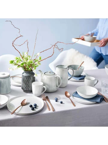 Die Henley Teekanne aus Steinzeug freut sich schon darauf, mit Ihnen und Ihren Freunden zu essen. Und genau wie Sie steht sie auf diese unkomplizierte, authentische Art, die sich beim Kochen, Tischdecken und Dekorieren lieber vom Gefühl als von strikten Vorgaben leiten lässt. Aus der Henley Serie sind passend erhältlich: ein großer Teller, ein kleiner Teller, eine Tasse, eine Karaffe und weitere Schalen, sowie Aufbewahrungsdosen. – Hochwertige Keramik: Robust und hitzebeständig – Jedes Teil ein Unikat: Natürliche Unterschiede bei der Farbgebung – Reaktive Glasur: Jedes Teil ein Unikat, durch Unterschiede bei der Farbgebung – Ein natürlicher Look mit Charme und Charakter – Im Trend: Skandinavisches Design – Geeignet für jeden Anlass durch schlichte und solide Machart