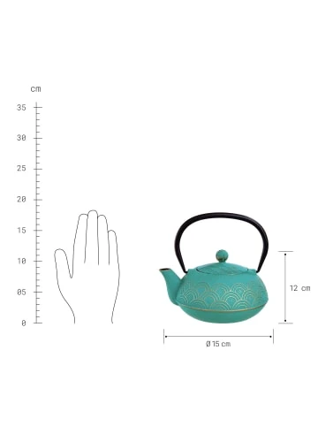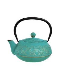 Ob morgens oder nachmittags, ob mit grünem oder schwarzem Tee, ob mit einem Schuss Milch oder einem Stück Gebäck – Sie entwickeln Ihre ganz private Tee-Zeremonie mit der Ceremony-Teekanne aus türkisem Gusseisen. Die Form dieser Teekanne ist asiatisch inspiriert, im Inneren verbirgt sie einen Siebeinsatz. Schwere Ausführung.