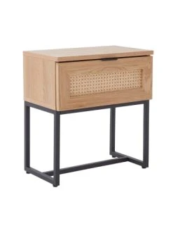 Ein Möbelstück der neuen Generation: Das Little Vienna Beistellschränkchen kombiniert Metall, Eichenholzfurnier und Rattan in Wiener Geflecht mit geradliniger, klarer Formensprache. Daraus entsteht ein ungemein modernes Design, das überall in Ihrem Zuhause für Wow- und Aha-Effekte sorgt. Sie platzieren den Bestellschrank z.B. im Wohnzimmer neben Sofa oder Sessel, nutzen ihn im Flur als Aufbewahrung und Ablage oder verwenden ihn im Schlafzimmer als Nachtschränkchen. Überall dort überzeugt das Vienna Beistellschränkchen mit einer Optik, die eher leicht als kompakt wirkt – und das trotz des massiven Gewichts dieses Möbelstücks.
